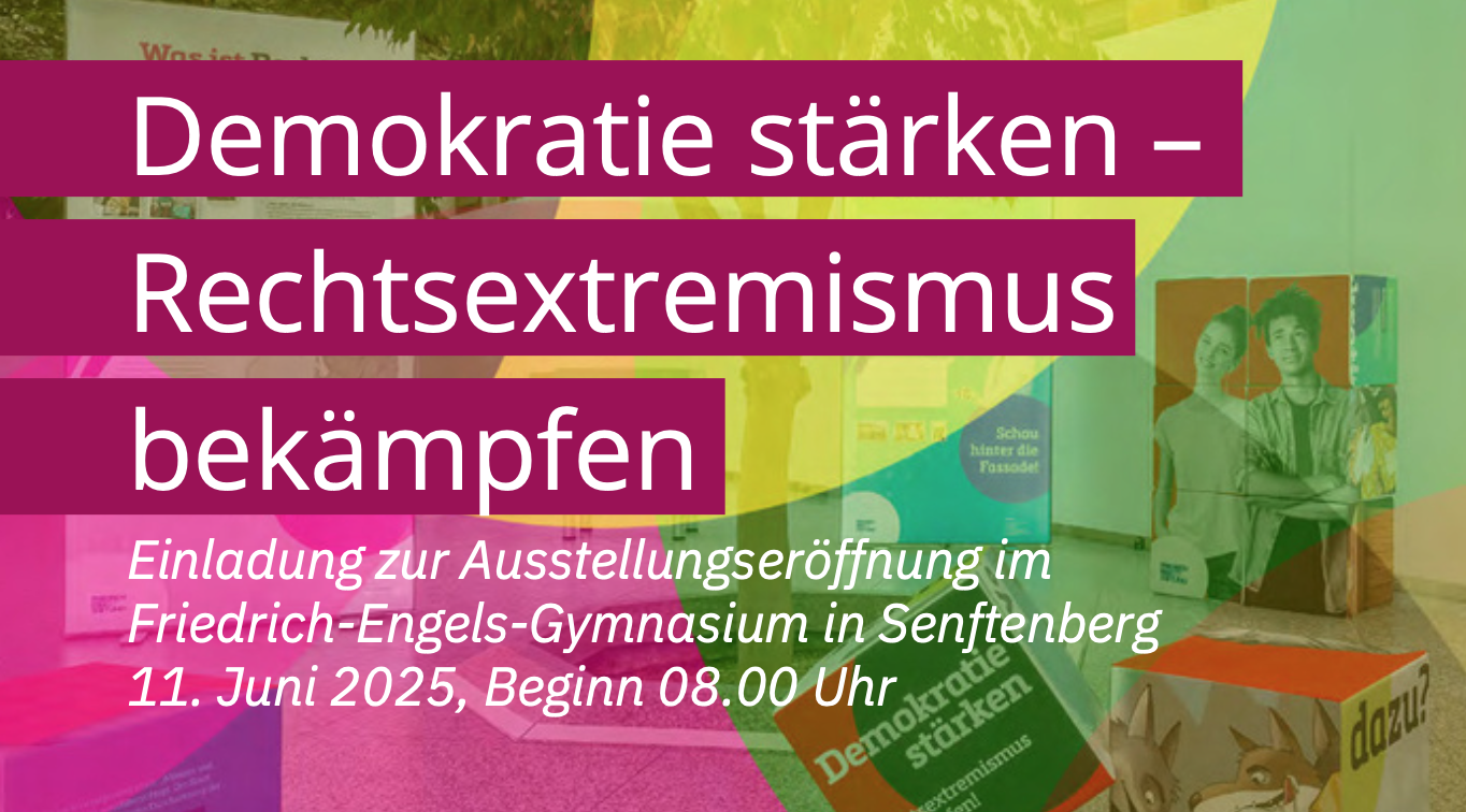 Friedrich-Ebert-Stiftung Einladung zur Ausstellungseröffnung im Friedrich-Engels-Gymnasium in Senftenberg 11. Juni 2025, Beginn 08.00 Uhr. Der Flyer befindet sich hier..