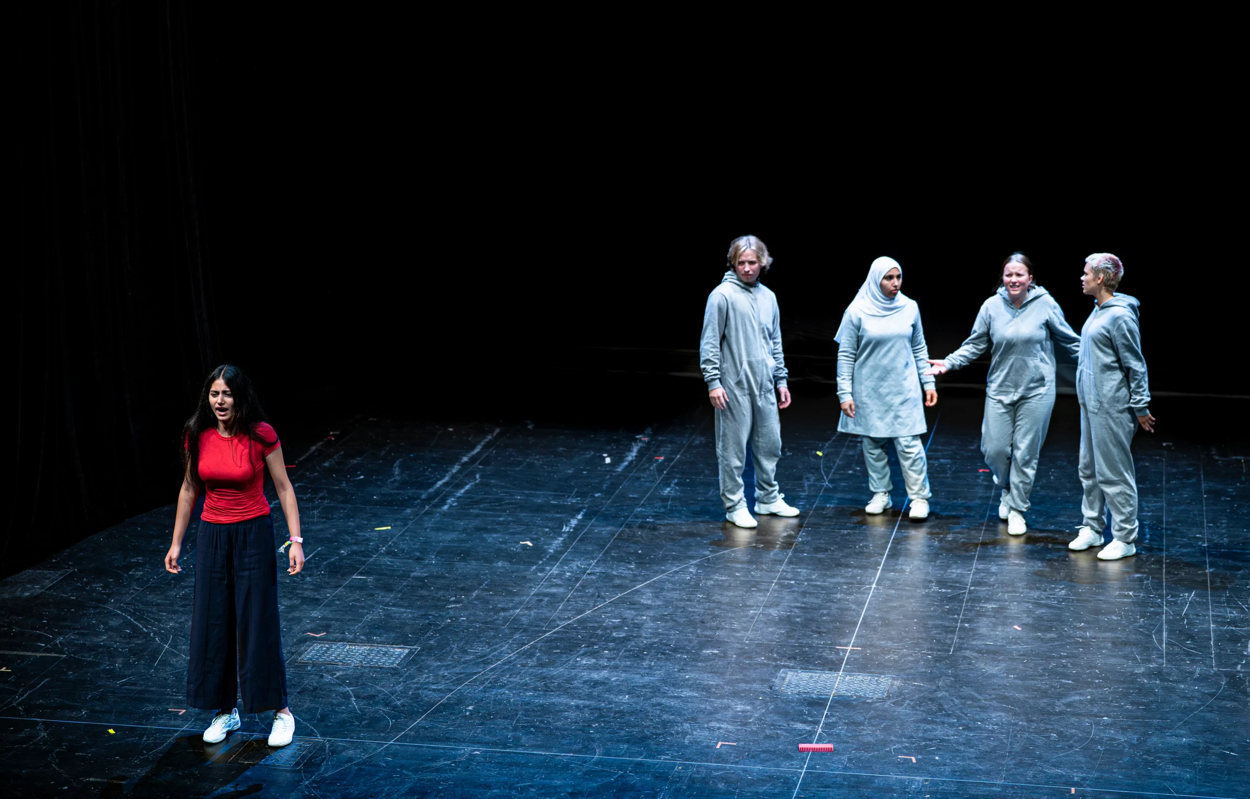 Das Bühnenbild bleibt schlicht, beinahe leer – bewusst zurückgenommen, damit die Körperlichkeit und Präsenz der Darsteller*innen in den Vordergrund treten. Der Fokus liegt klar auf dem Menschen. Von Beginn an macht das Stück deutlich, worum es geht: um das Leben als Mensch in dieser Welt – mit all seinen Facetten, mit all seinen Schönheiten, aber vor allem auch mit Härte, Qualen, Leiden. „Welten“ bezieht dabei eindeutig Stellung für Vielfalt und das vermeintlich Fremde. Leuchtende Kostüme kontrastieren mit der Trostlosigkeit des „bellenden Mobs“, der als Sinnbild für einen nicht enden wollenden Hasssturm immer wieder auftritt: laut, drohend, erbarmungslos. Durch ihre aufrichtige Darbietung wurden die Darsteller*innen von L.u.S.T. mit ihren Geschichten zu den Held*innen dieses Abends. Unbeugsam stellten sie sich dem geifernden Mob entgegen – voller Stolz, Kraft und Verletzlichkeit zugleich. So gelingt es dem Ensemble mit spürbarem Enthusiasmus und ehrlicher Hingabe, das Publikum für sich zu gewinnen. Einen nicht zu vernachlässigenden Beitrag dazu leistet die biografisch erarbeitete Inszenierung, welche Authentizität und Glaubwürdigkeit vermittelt. Die Einzelnen, welche dem Mob gegenüberstehen, zeigen Stärke und vollbringen in beispielhafter Manier, dass es möglich ist, die Mauern des Hasses zu durchbrechen. Immer wieder macht das Stück aufmerksam auf bestehende gesellschaftliche Spannungen – zwischen Ausgestoßensein und Akzeptanz, zwischen Verlorenheit und Zugehörigkeit. Das Stück arbeitet konsequent mit Kontrasten – sei es durch farbliche Abgrenzungen oder durch die Dynamik der Gruppengefüge. So entstehen Bilder von schlichter Ästhetik und eindringlicher Klarheit. Ein dramatischer Höhepunkt liegt in der Erkenntnis, dass die Verleugnung der eigenen Realität unweigerlich in Leere mündet – in Ziellosigkeit, Farblosigkeit, Heimatlosigkeit. Doch die Freude und der Glaube an das Gute strahlen durch die Darstellenden immer wieder unerschütterlich hindurch. Das unermüdlich tickende Rad des Hasses und der endlosen Kämpfe, das an uns allen zerrt und eindrucksvoll durch den Einsatz der Körper auf der Bühne sichtbar gemacht wird, kann durchbrochen werden – wenn wir uns bewusst und aktiv für die Begegnung entscheiden. Der Abend findet seinen Abschluss in einem gelebten Vorbild. Die fünf Menschen treffen die Entscheidung, aufeinander zuzugehen, sich wahrzunehmen, sich zu begegnen. Wo die Begegnung beginnt, zeigt uns „Welten“, beginnt das Leben. Es war eine große Freude zu erleben, wie die Darsteller*innen sich im Einklang mit sich selbst und ihrer Identität zeigen und voller Freude in ihren Erzählungen aufgehen. Den Mut zu finden, diesen Schritt zu wagen, sich von einer solch verletzlichen Seite zu zeigen, zeugt von Größe. So bleibt mir, Danke zu sagen für diesen besonderen Abend – und die Hoffnung auf weitere Stücke von L.u.S.T.