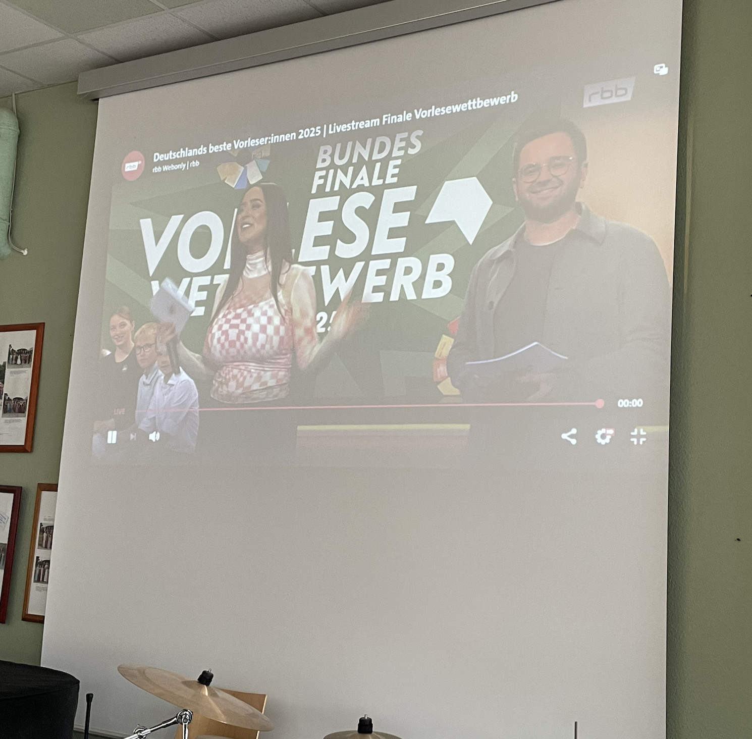 Am 25. Juni 2025 fand der mit Spannung erwartete Vorlesewettbewerb statt, der dieses Jahr vom RBB live übertragen wurde. Unserer Schule, dem Friedrich-Engels-Gymnasium Senftenberg, hatte die Ehre, durch den talentierten Fritz Jasper Matern vertreten zu werden.